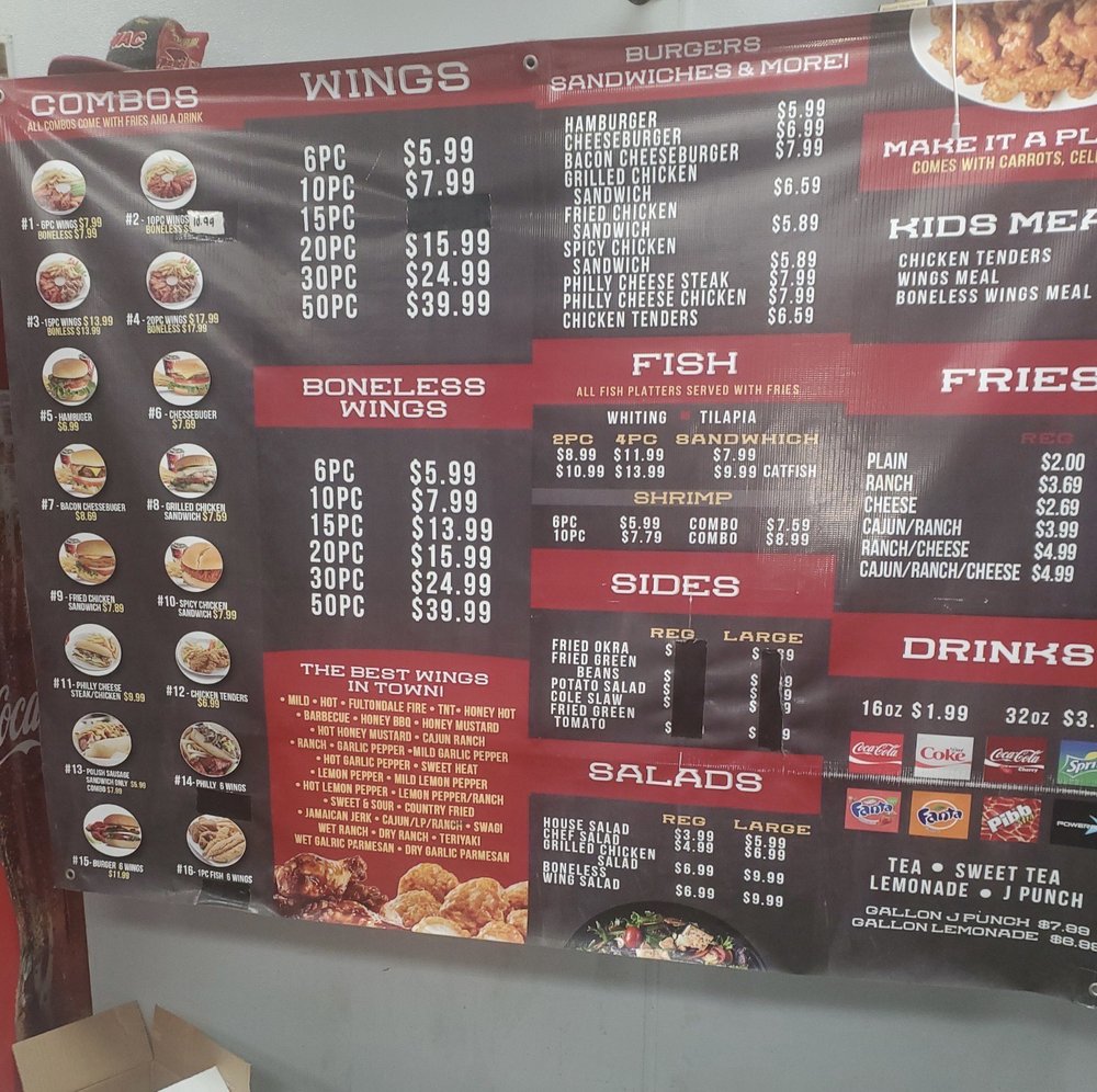 Introducing the menu at J Wings, a burger and sandwich joint located at 1709 Decatur Hwy in Fultondale, AL. This restaurant offers a variety of mouthwatering options, including wings, burgers, and sandwiches. Customers rave about the flavorful wings, with options like hot lemon pepper, garlic-parmesan, and traditional lemon pepper. The staff is friendly and accommodating, providing top-notch service. While the wings may be on the smaller side, the variety of flavors and the overall quality leave a lasting impression. With options for vegetarians and a welcoming atmosphere for groups and families, J Wings is a must-visit spot for lunch or dinner. Experience exceptional wings and friendly service at J Wings - a hidden gem for wing lovers in Fultondale.